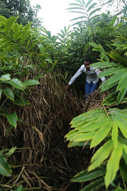 Below, a plot of turmeric and rosemary. Worke, whose named means “my gold” in Amharic, is one of the turmeric and herb farmers (how appropriate!); she is now a proud grandmother, and has expanded her plot to three times the size that it was last year. Her turmeric leaves practically glowed in the sunlight, and I could have curled up among them and gone to sleep, if it weren’t for the ankle biting ants.